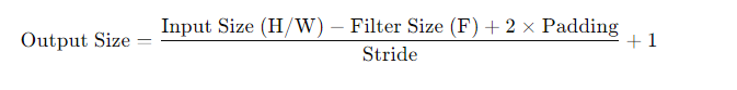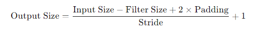 Calculate the output size of a convolutional layer: