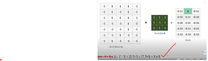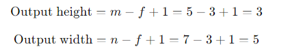 1.Given a 5x7 input matrix (m x n) and a 3x3 filter matrix (f x f), perform a valid convolution operation. Calculate the size of the output matrix.