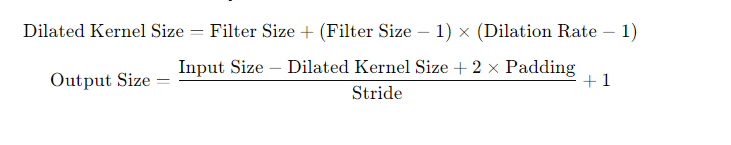 - Dilated convolution output size: