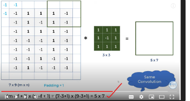 2.Given a 7x9 input matrix (m x n) and a 3x3 filter matrix (f x f), perform a convolution operation with same padding and calculate the size of the output matrix.
