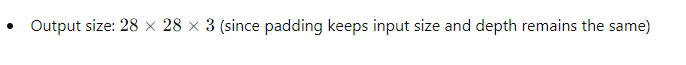 - Calculate convolution with same padding: Input size: 28x28 Filter size: 3x3 Padding: "same" (equivalent to padding = 1) Stride: 1 Solution: