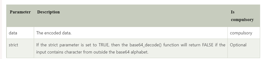string base64_decode ( string $data [, bool $strict = FALSE ] )