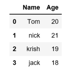 data = {'Name':['Tom', 'nick', 'krish', 'jack'],