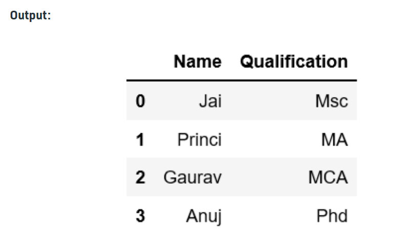 data = {'Name':['Jai', 'Princi', 'Gaurav', 'Anuj'],
