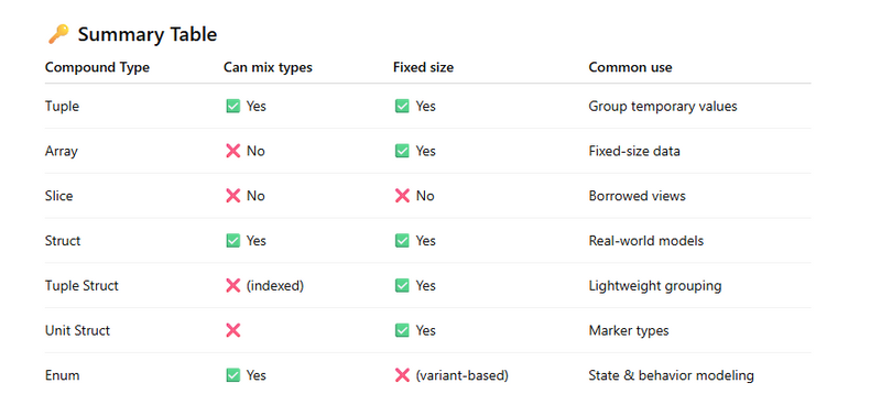 Additionally, Enums are often discussed alongside compound types because they group data variants.