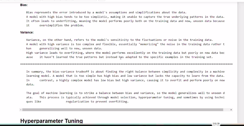 bias trade off== we have to find prediction between underfitting and overfitting by hyperparameter tunning