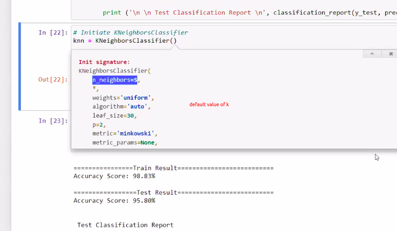 by default k no is 5 kneighbour