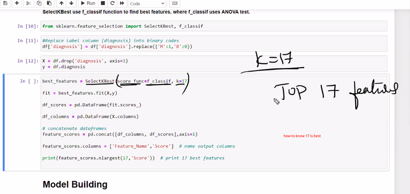 choose how to select 17 (for k)see where to less differnce t