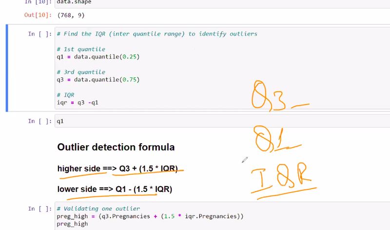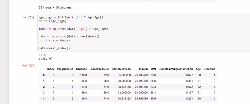 Example: “Write Python code to detect and handle outliers in the ‘Age’ column of this DataFrame.”