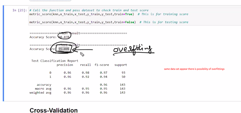 after cross val score also same accuracy score and not much difference between training and test result then it means no chance for overfittings