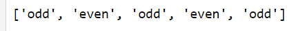 # Output: ['odd', 'even', 'odd', 'even', 'odd']