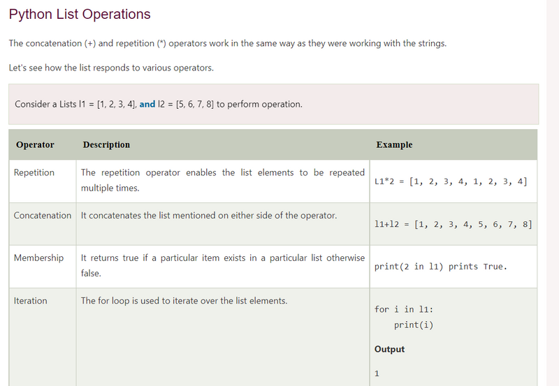 repetition,iteration,concatenation in list