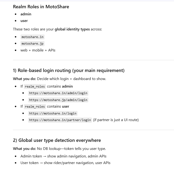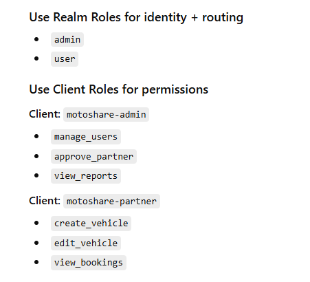 MotoShare: Realm Roles Feature Mapping (Admin vs User)
