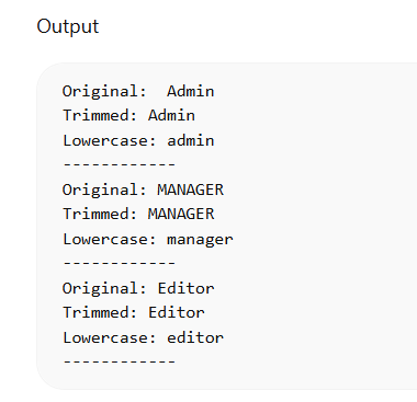 let roles = [" Admin ", "MANAGER", "Editor"];