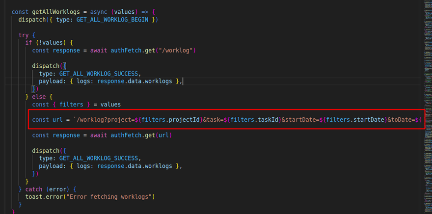 toast.error("Error fetching worklogs")