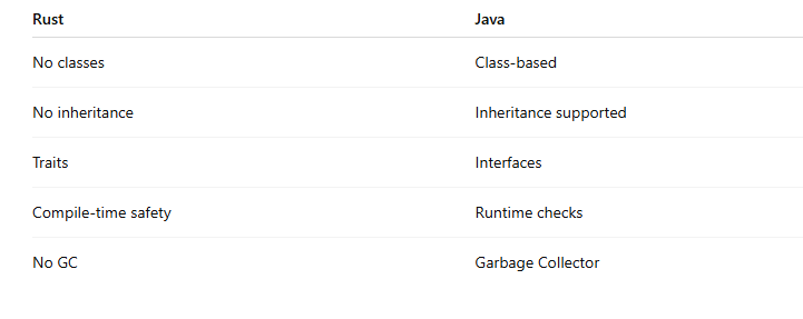 1️⃣9️⃣ Difference between Rust structs and Java classes?