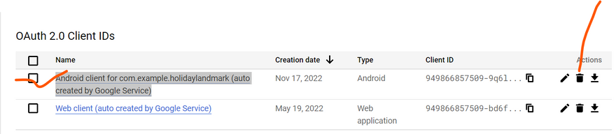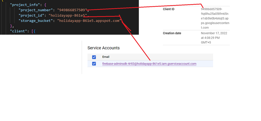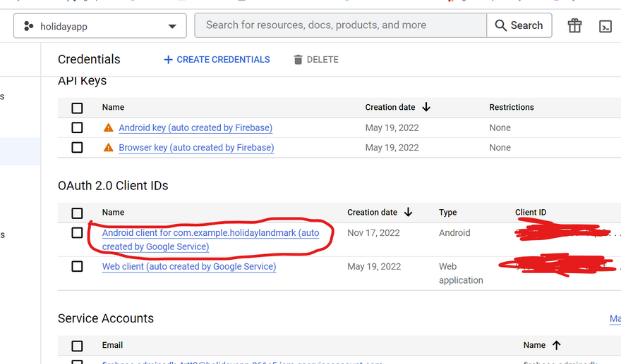 here I already use Android client for (auto created by Google Service) for pakagee com.example.holidaylandmark in project holidayapp