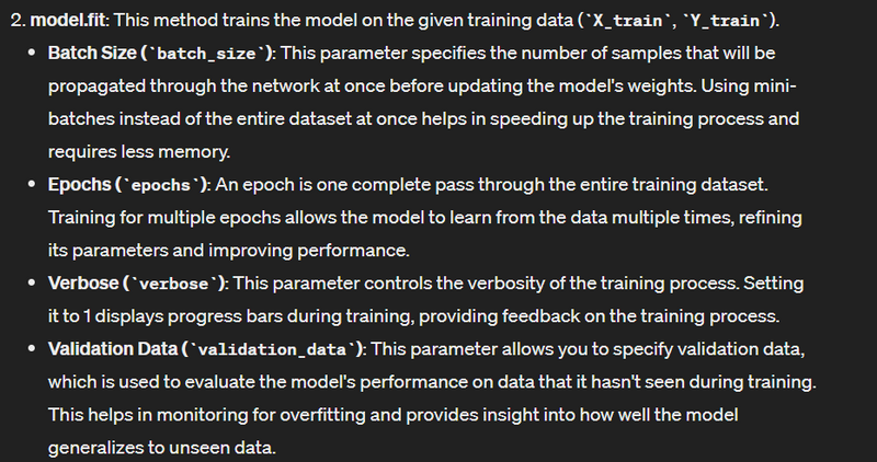 That's a basic overview of how the Keras Sequential model solves a deep learning task step by step. It provides a simple and intuitive interface for building and training deep learning models, making it accessible to both beginners and experienced practitioners.