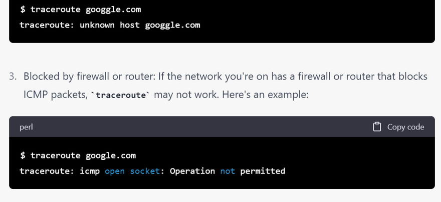 Different Platforms: traceroute is available on a variety of platforms, including Linux, Windows, and macOS, and can be used to diagnose network connectivity issues on a wide range of devices.