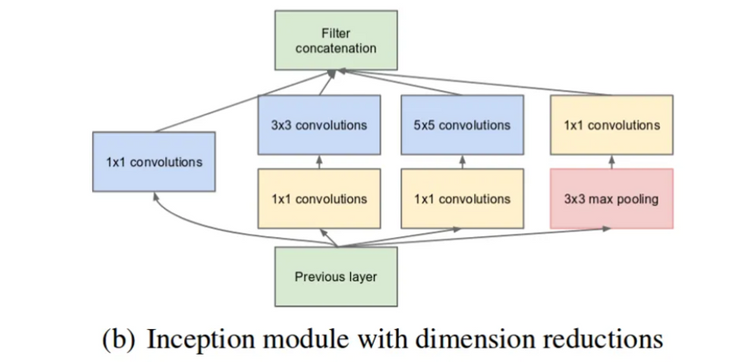 Why not have filters with multiple sizes operate on the same level? The network essentially would get a bit “wider” rather than “deeper”. The authors designed the inception module to reflect the same.