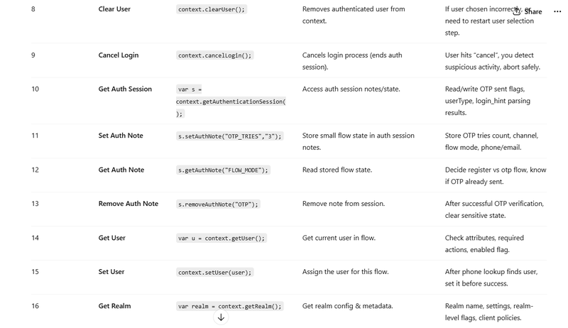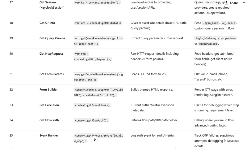 4) context.getAuthenticationSession() + setAuthNote/getAuthNote/removeAuthNote