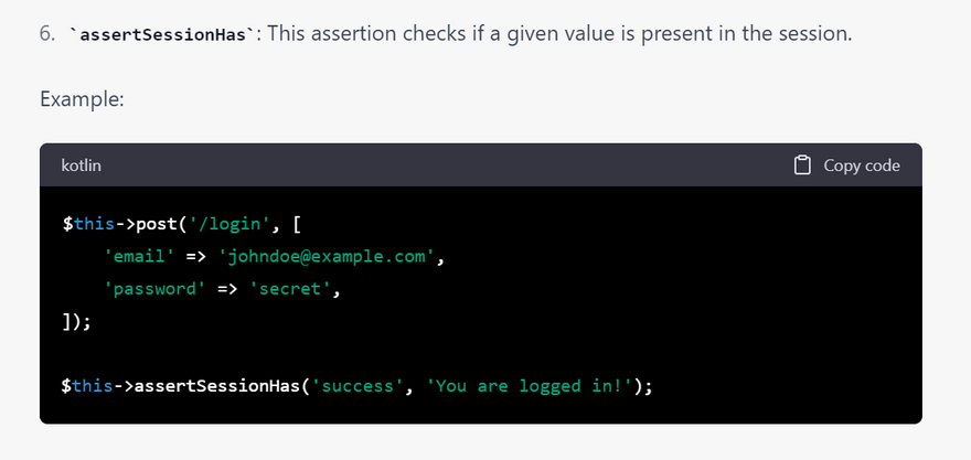 Here's an example of how assertTrue unit testing can be helpful in building logic in Laravel 9: