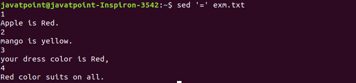 10.How To print the first item along with the row number(NR) separated with ” – “ from each line in geeksforgeeks.txt