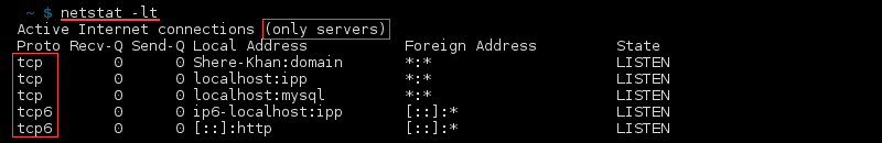 Display Numerical Addresses, Host Addresses, Port Numbers.