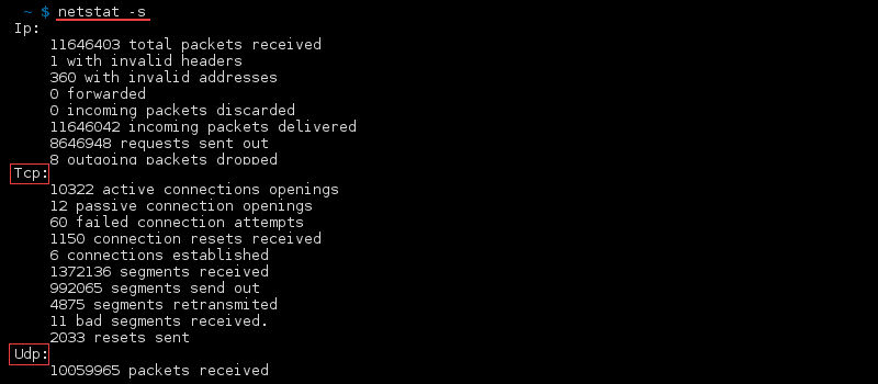 syntax to list All Ports and Connections,List All TCP Ports,List All UDP Ports,List Only TCP or UDP Listening Ports,Display statistics for all ports regardless of the protocol,Statistics for UDP/TCP Ports.
