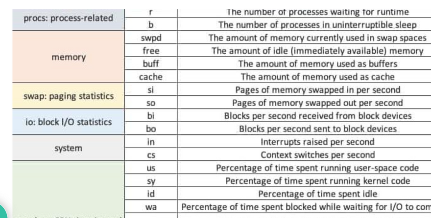 Explain different section of vmstat output