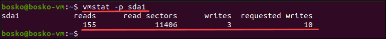 Use vmstat to see partition statistics in Linux.