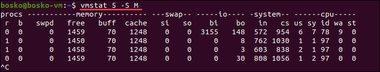 vmstat 5 -S M