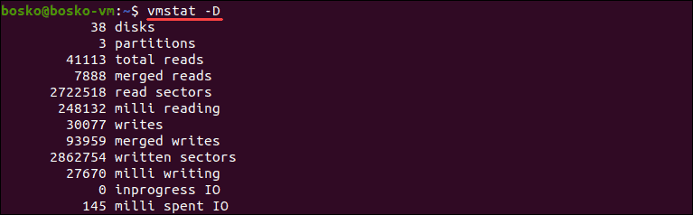 Note: If you are using Ubuntu, the disk count is usually higher than your actual number of disks. This is because installing Snap applications creates a SquashFS pseudo-filesystem, which is attached to a /dev/loop device, and vmstat counts it as a disk.