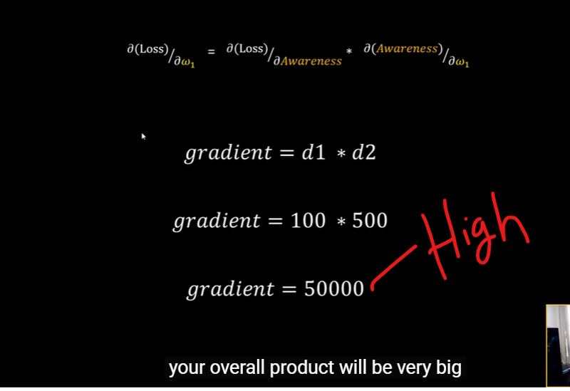 Large Weights: If the weights of the network are initialized too large or grow during training, they can cause the gradients to explode.