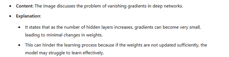 Activation Functions: When using activation functions like the sigmoid or tanh, gradients can shrink significantly during backpropagation. For example, the derivative of the sigmoid function is small for inputs far from zero, leading to small gradients.