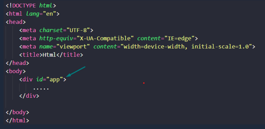 This refers to the root Vue instance from which the rest of the application comes down. and it will work with the HTML document. See the example below: