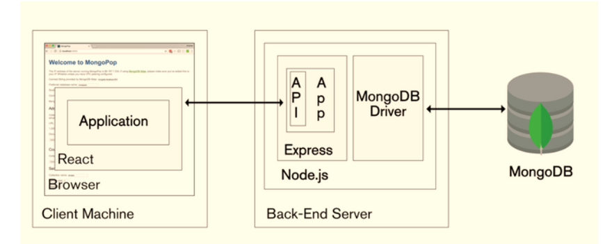 Server or middle-tier - It is just next level from the top layer and is mainly handled by two components of the MERN stack, i.e., Express.js and Node.js. These two's components handle it simultaneously because Express.js maintained the Server-side framework, running inside the Node.js server. Express.js is one of the widely used backend development JavaScript Frameworks. It allows developers to spin up robust APIs (Application Programming Interface) and web servers much easier and simpler. It also adds helpful functionalities to Node.js HTTP (HyperText Transfer Protocol) objects. Whereas on the other hand, Node.js plays a very important role in itself. It is an open-source server environment, and it is a cross-platform runtime environment for executing JavaScript code outside a browser. Node.js continuously uses JavaScript; thus, it's ultimately helpful for a computer user to quickly create any net service or any net or mobile application.