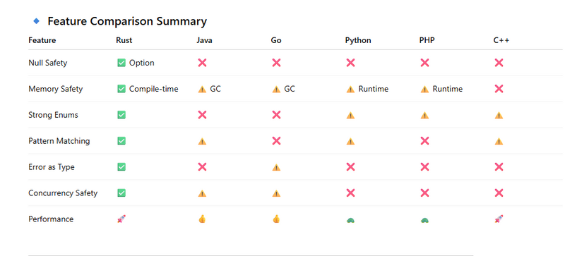 Rust enforces ownership, borrowing, and lifetimes through its type system.