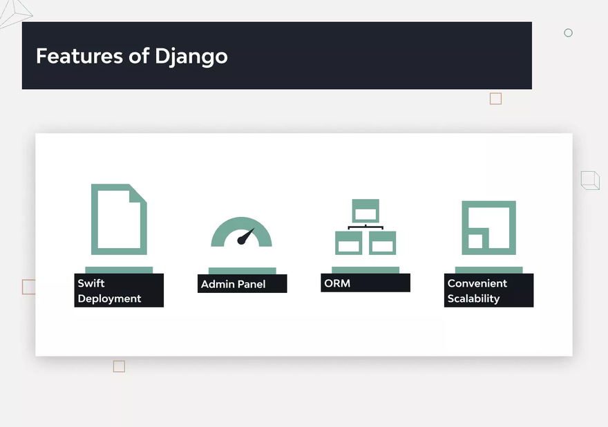 One of Django’s main goals is to simplify work for developers. To do that, the Django framework uses: