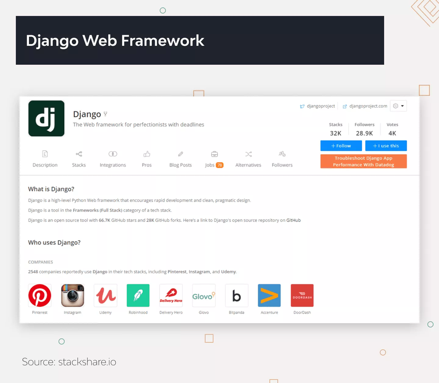 Read more: 10 Popular Websites Built With Django