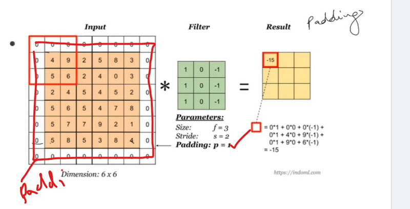 - Additional pixels are added around the input feature map to increase spatial dimensions.