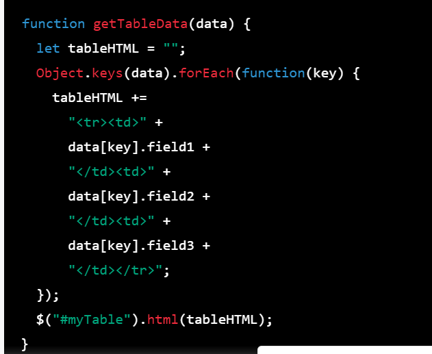 $("#myTable").html(tableHTML);