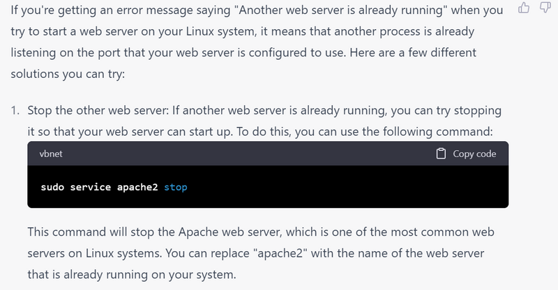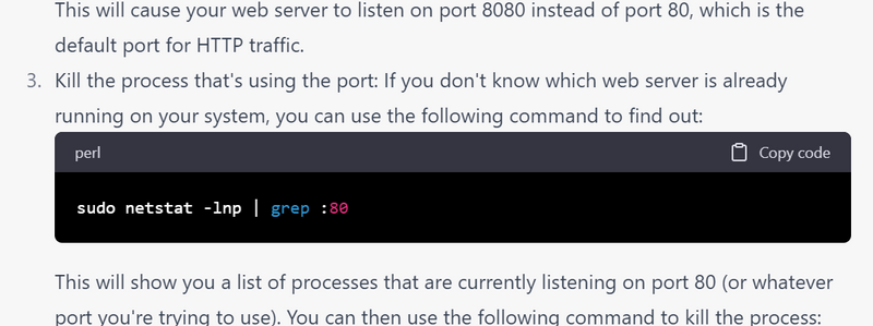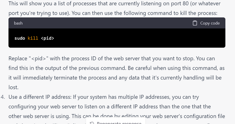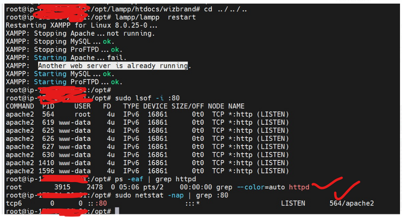 earlier apahe2 is running on 80 and his pid 564 after kill 564