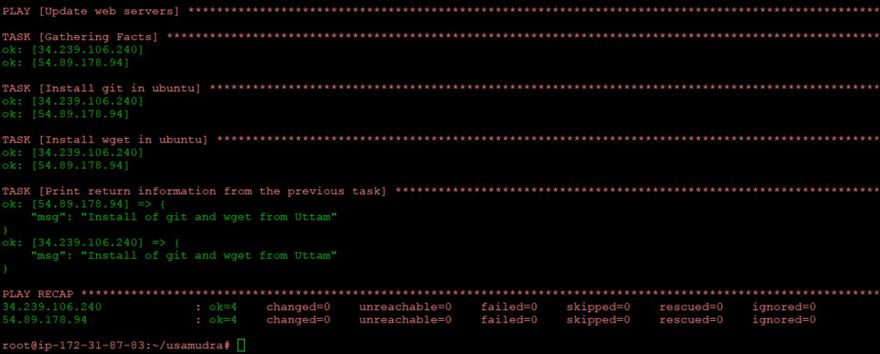 - name: Print return information from the previous task ansible.builtin.debug: msg: "Install git and wget and run bash by Uttam"